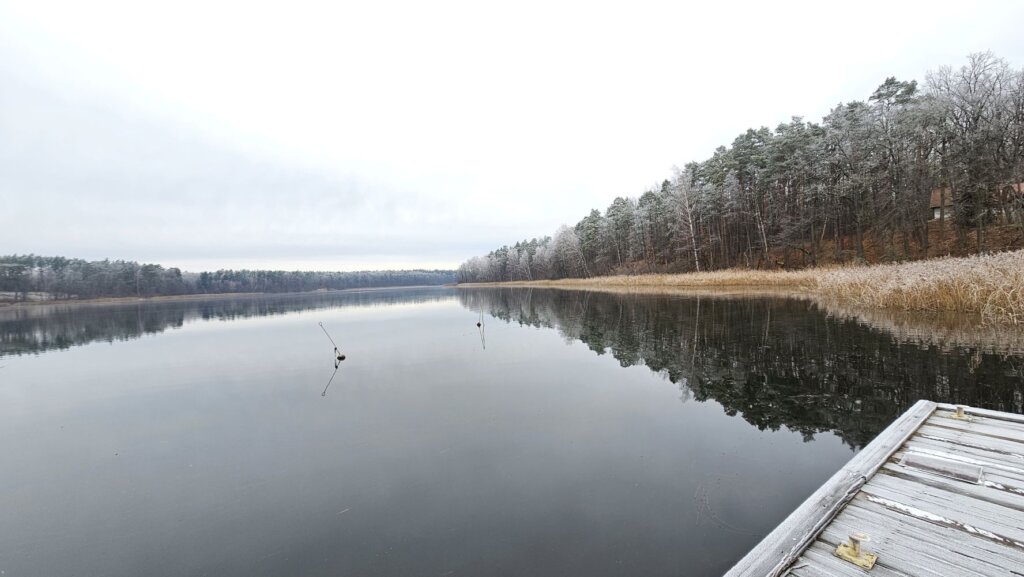 Na jeziorach lodu jeszcze nie ma, ale pomniejsze stawy lód już skuł. Choć jego warstwa jeszcze cieniutka. Dobrą wiadomością jest to, że poziom wody jest na razie całkiem niezły i pewnie do wiosny to się nie zmieni, tak więc w maju będzie można śmiało ruszać na Jaśkowo, czyli najbardziej odległy kraniec jeziora Nidzkiego. Nawet dużymi jachtami, jak np. Antila 28. My już nie możemy się doczekać.
